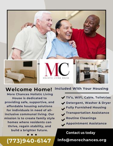 More Chances Holistic Living House is dedicated to providing a safe haven for re-entry citizens, independent seniors, veterans, and battered women. Located on the South Side of Chicago, we foster a nurturing environment to help you begin your next chapter with dignity and care.